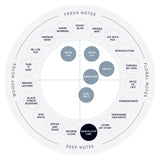 Aromatic woods fill a room, wrapping you in a warm and comforting scent as you slowly fall into a dream.
